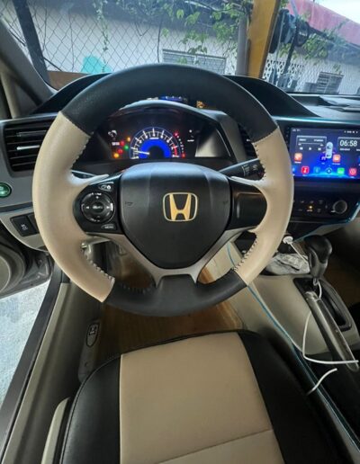 Forrado y restauración de volante con materiales resistentes y agarre cómodo.